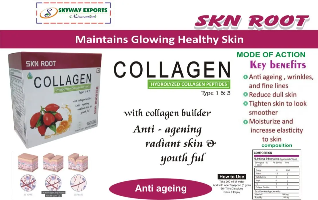 Hydrolyzed Collagen Peptides: Collagen is a protein that provides structure and elasticity to the skin. Hydrolyzed collagen peptides are broken down into smaller, more easily absorbed molecules that may help to stimulate the production of new collagen in the skin. This can help to improve skin elasticity, reduce the appearance of fine lines and wrinkles, and promote a more youthful, glowing complexion.